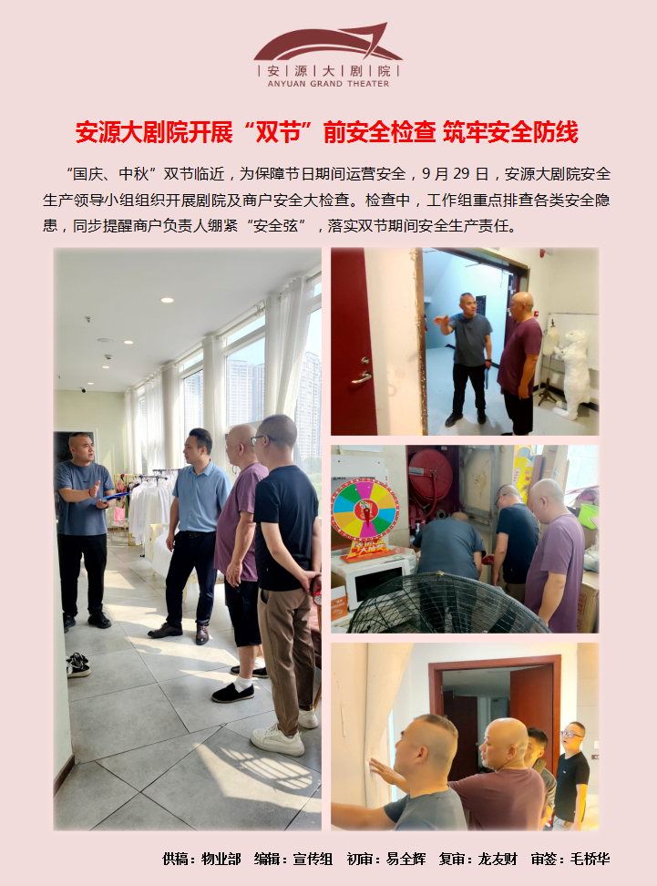 安源大剧院开展“双节”前安全检查筑牢安全防线