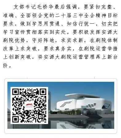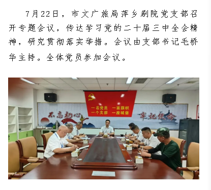 市文广旅局萍乡剧院党支部召开专题会议传达学习党的二十届三中全会精神